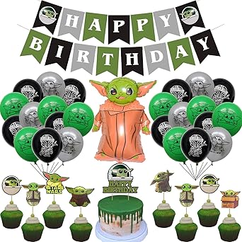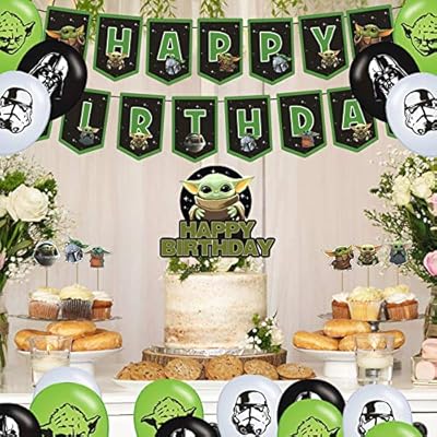 Baby yoda party supplies set the mandalorian theme birthday party decorations supplies for kids teens with happy birthday banner garland, cake topper, cupcake toppers, balloons for party decorations.