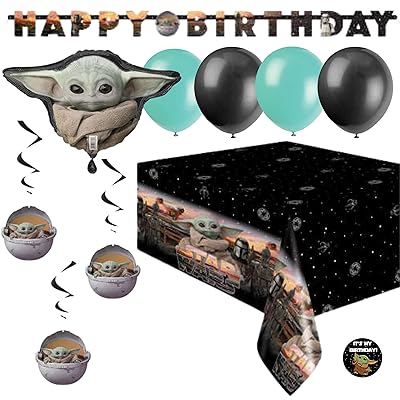The latex balloons are 12″ in diameter and are helium quality. Diy a mandalorian and baby yoda themed birthday party! Baby yoda mandalorian banner birthday party decorations first birthday cake smash black green grey. Highlights 1 star wars the mandalorian grogu/baby yoda party headband combine with more baby yoda party supplies.wars the mandalorian the child baby yoda party headband. Baby yoda party decorations set birthday party decorations,the mandalorian theme birthday party decorations supplies for kids teens with birthday banner,ballboons,cake topper,cakecup toppers. For yoda baby theme favor supplies kit decorations for baby shower and children's birthday party.includes:all are 16 piece, favor bags with handles,each measuring 8.3*6*3.perfect size for party favor gift bags,it can hold many gifts for kids who take party in your birthday party , baby. This set gives you 12 balloons total, with six of each design. Top this adorable star wars costume off with the green hat that mimics yoda's iconic pointed ears. Throwing a baby yoda themed party is easy with the totally rad the mandalorian party supplies that are available. This baby yoda pinata is the perfect party game for your baby yoda birthday party. ►each banner piece is 4.25x5.5 inches. Roulette star wars / игрушка плюшевая star wars малыш (baby yoda) мандалорец. I am grogu i am 50 years old with you the force be ❇️.